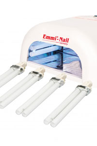 In der Lieferung sind 4 UV-Röhren 9 Watt 9S enthalten. Diese Röhren sind speziell für die UV-Geräte von Emmi-Nail entwickelt worden und können bei Emmi-Nail Schweiz gekauft werden. Nach ca. 1300 Stunden empfehlen wir den Kauf von Ersatzröhren damit die optimale Aushärtung von Gelmodellagen und von Shellack Produkten gewährleistet bleibt.