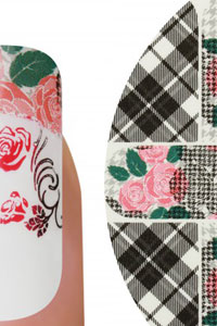 Der Nailsticker Fashion N608 mit dem zeitlosen Karo-Muster, kombiniert mit rosaroten Rosen. Diese Sticker einfach auf alle Nägel anbringen, als Ergänzung zu Fullcover Nails oder als spezielles Design zu anderer Nailart-Kreationen.